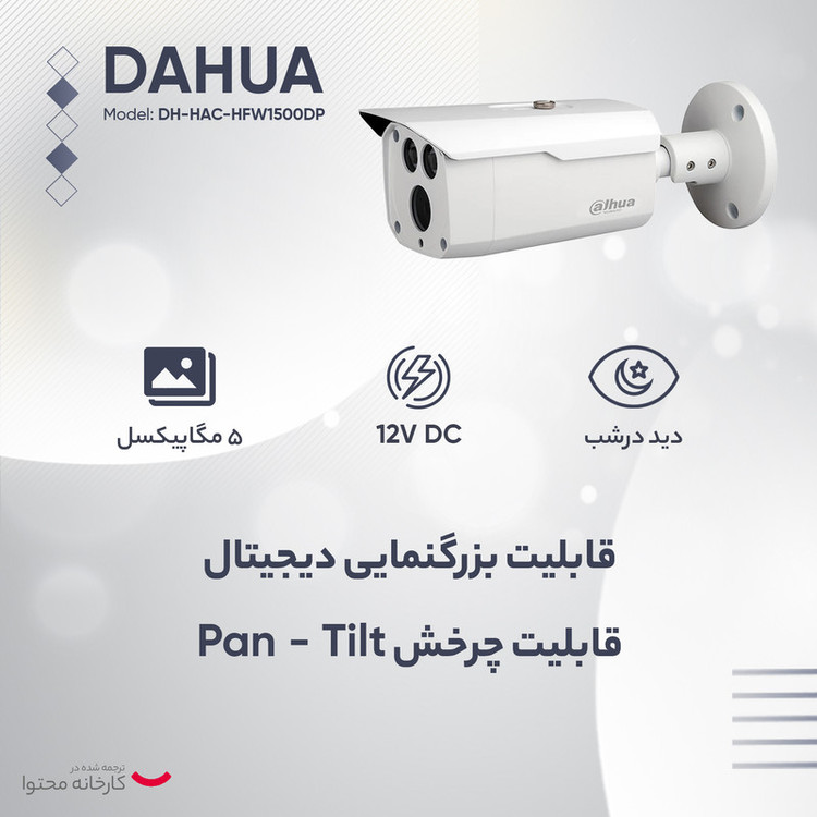 قابلیتهای دوربین امنیتی و نظارتی : قابلیت چرخش Tilt , قابلیت چرخش Pan , قابلیت بزرگنمایی دیجیتال , دید در شب
