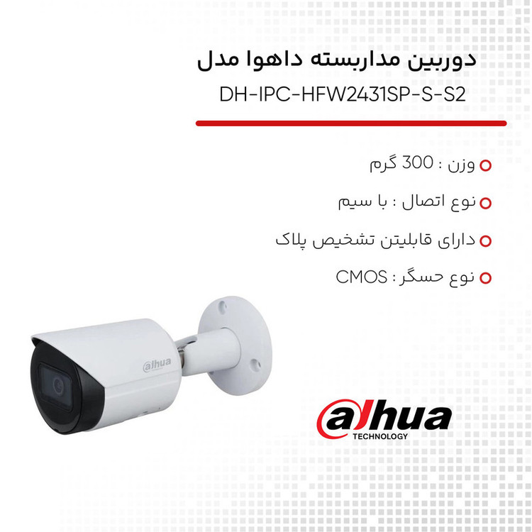 دوربین HFW2431SP-S-S2 یکی از محصولات بی نظیر 4 مگاپیکسلی داهوا می باشد که می تواند بسیاری از نیازهای شما را برآورده سازد. قیمت HFW2431SP-S-S2 نسبت به سایر مدل های بولت 4 مگ داهوا پایین تر است در عین حال قابلیت پیشرفته H265 اسمارت را دارا می باشد. همچنین قابلیت ضد نور تعبیه شده در آن از نوع WDR سخت افزاری می باشد که یک آپشن پیشرفته محسوب می شود. به دلیل اینکه دوربین 2431SP می تواند 30 فریم بر ثانیه را با کیفیت 4 مگ پردازش کند و در عین حال دارای WDR می باشد. آن را با عنوان دوربین پلاک خوان نیز می شناسند. به این معنی که می توان در آن پلاک ماشین را در شرایط نرمال تشخیص داد.