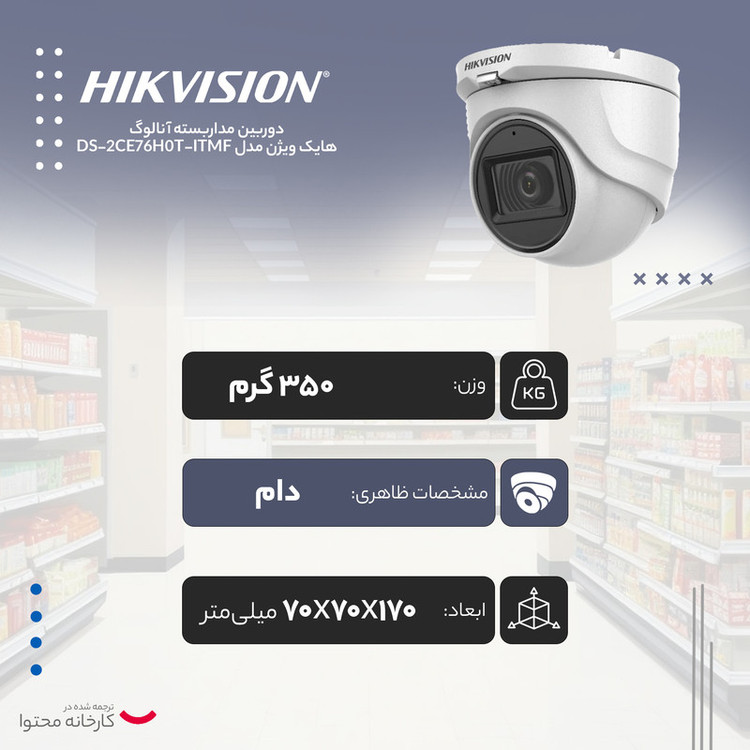 دوربین مداربسته هایک ویژن DS-2CE76H0T-ITMF یک دوربین مداربسته 5 مگاپیکسل بدنه فلزی با تکنولوژی توربو اچ دی است که با تمام دستگاههای DVR سری HUHI هایک ویژن سازگاری دارد.