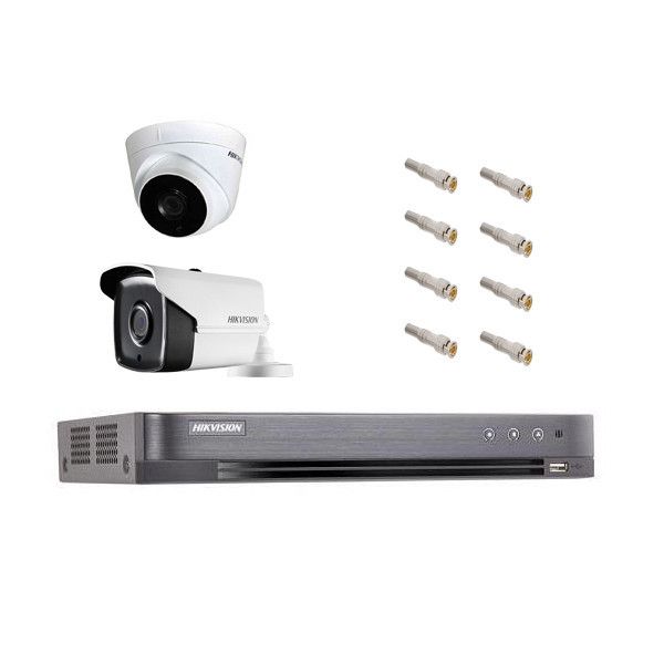 دستگاه دی وی ار 8 کانال هایک ویژن مدل DS-7208HUHI-K2/P یکی از دستگاه های کاربردی و پرفروش بوده و از کیفیت و کارایی بالایی برخوردار است. این دستگاه می تواند از 8 دوربین توربو اچ دی پشتیبانی کند. اتصال دوربین ها به این دستگاه DVR هایک ویژن با استفاده از کابل کواکسیال RG59 است. پورت های ورودی و خروجی آن شامل پورت های VGA ،HDMI ،USB ،SATA، ورودی و خروجی صدا … است. این دستگاه دی وی ار 8 کانال هایک ویژن می تواند از دوربین هایی تا کیفیت 5 مگاپیکسل پشتیبانی کند. دارای یک پورت ارتباطی شبکه از نوع LAN(خروجی/ورودی) با پهنای باند 10M/100M که امکان اتصال به سیستم های کامپیوتری را فرآهم می کند. قابلیت پشتیبانی از 1 عدد هارد با ظرفیت 8 ترابایت از دیگر مشخصات این دستگاه است. از لحاظ فیزیکی دارای وزن کمتر از 1.78 کیلوگرم و ابعاد 380 × 320 × 48 mm (15.0 × 12.6 × 1.9 inch) است. از قابلیت Dual Stream پشتیبانی می کند در این تکنولوژی تصاویر دردو جریان متفاوت به دو کاربری متفاوت ارسال می گردد. استفاده از استریم های با حجم و کیفیت پایینتر برای مصارف غیرضروری باعث افزایش صرفه جویی در هزینه های سیستم می گردد. دستگاه DVR هایک ویژن از پروتکل های شبکه شامل TCP/IP, PPPoE, DHCP, Hik-connect Cloud P2P,DNS, DDNS, NTP, SADP, NFS, iSCSI, UPnP™, HTTPS,ONVIF پشتیبانی می کند. ولتاژ ورودی دستگاه 12 ولت و برق مصرفی آن کمتر از 60 وات است. این دستگاه از روش های فشرده سازی H.265+/H.265/H.264+/H.264 برای کاهش حجم تصاویر استفاده می کند. از استاندارد ONVIF پشتیبانی کرده و می تواند از محصولاتی از سایر برندها که دارای استاندارد ONVIF هستند پشتیبانی کند. این محصول با ضمانت دوساله به فروش می رسد. این مجموعه دارای 3 عدد دوربین مداربسته بولت هایک ویژن مدل DS-2CE16H0T-IT1F و یک عدد دوربین مداربسته دام هایک ویژن مدل DS-2CE56H0T-IT1F و همچنین 8 عدد فیش BNC می باشد.